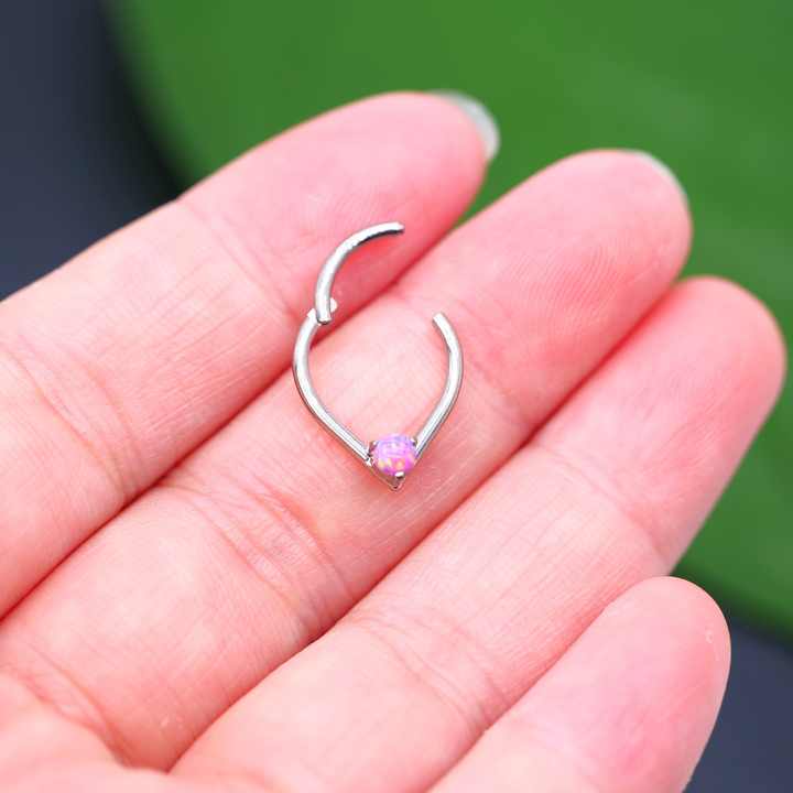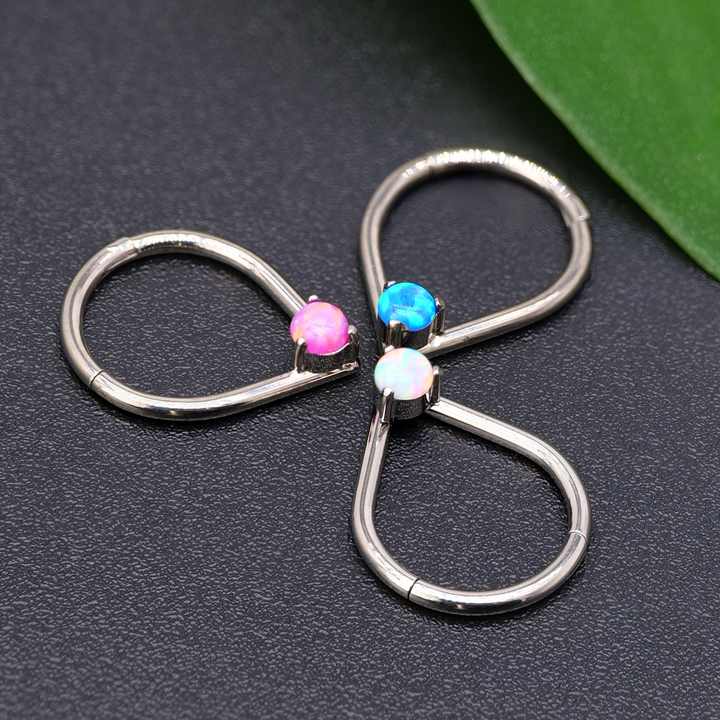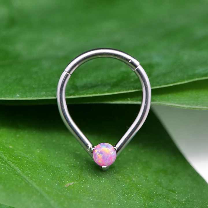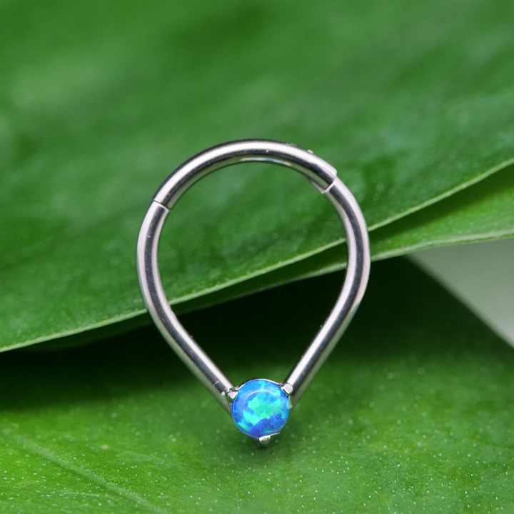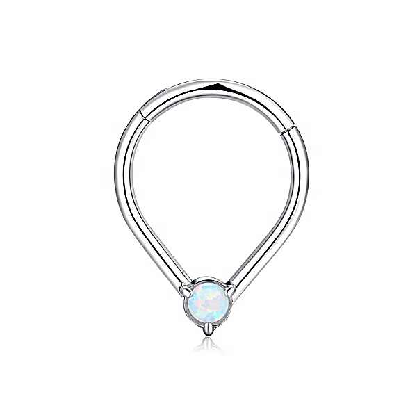 Crafted for durability and style, this hinged titanium hoop ring features a captivating water opal stone in a secure claw setting. Made from ASTM F136-certified implant-grade titanium, it is nickel-free and hypoallergenic, ideal for sensitive skin. The 16G (1.2mm thickness) 10mm diameter segment hoop design ensures easy insertion and a comfortable fit for nose, conch, tragus, and other body piercings. Available in multiple plating options including rose gold, silver, gold, and natural titanium finishes to match personal preferences. Weighing just 0.050kg with compact 15X10X5 cm packaging, this unisex jewelry piece suits various occasions from weddings to anniversaries. The SGS-certified titanium construction resists tarnishing, while the hinged closure provides secure wear during daily activities. Includes sample customization services for personalized designs.