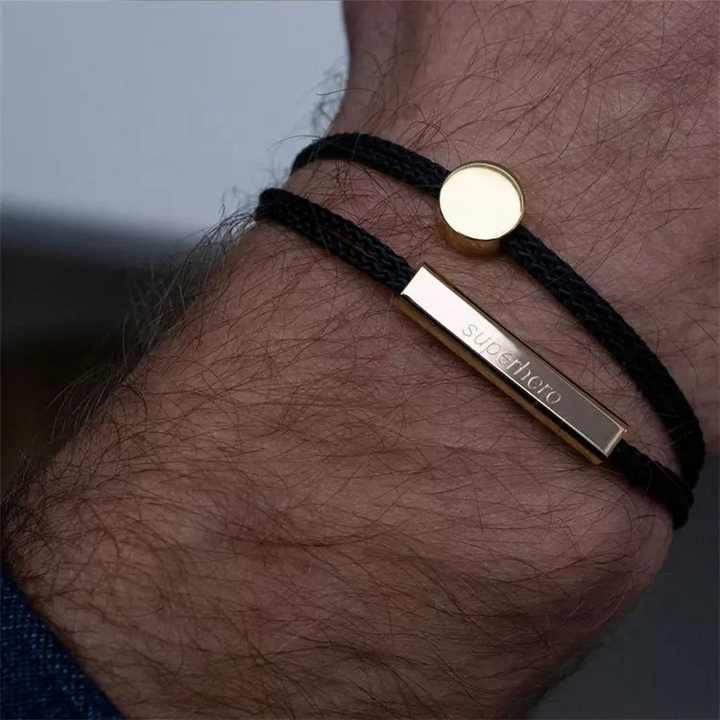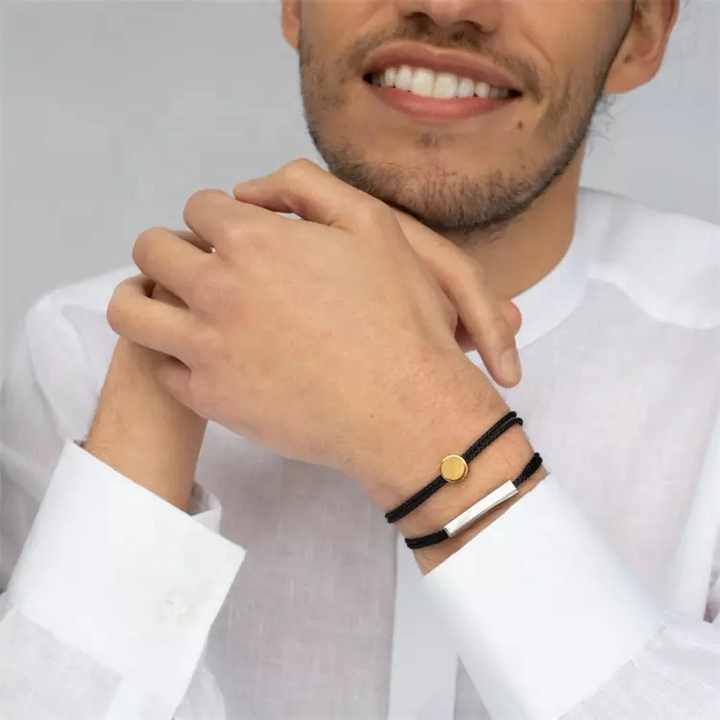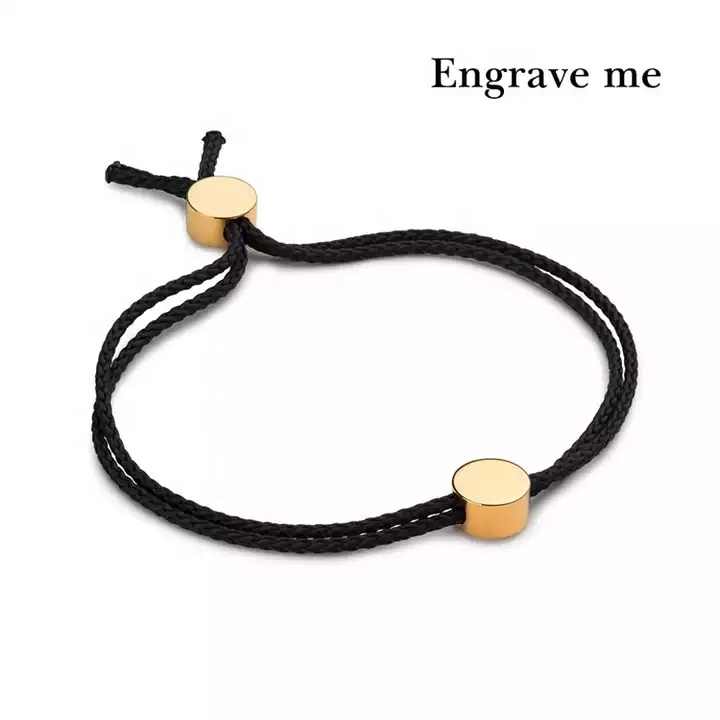 Crafted from durable stainless steel with a luxurious 18K gold plated finish, this adjustable bracelet features a customizable engraved disc perfect for adding initials, logos, or meaningful messages. The trendy chain link design suits unisex, men’s, and women’s styles, offering a hypoallergenic and tarnish-resistant option for daily wear. With an adjustable rope closure, it comfortably fits wrist sizes 6-8 inches. Ideal for weddings, anniversaries, engagements, or personalized gifts, this piece combines fashion and functionality. Third-party certified for quality assurance, it arrives in protective OPP packaging and supports bulk wholesale orders with a 10-piece MOQ. OEM/ODM customization is available for unique branding needs, backed by a weekly supply capacity of 1000 units.