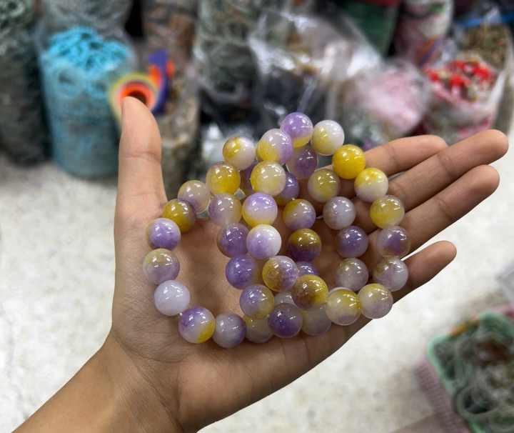 This 13mm beaded bracelet features a vibrant purple-honey coloring stone design, combining crystal and rhinestone elements for a charming accessory. Crafted with durable materials, the elastic string ensures a comfortable fit for most wrist sizes. Its unisex cute style makes it ideal for daily wear, spiritual occasions, or as a thoughtful gift. The semi-transparent beads create a delicate interplay of light, while the Buddhist-inspired design adds symbolic value. Suitable for casual outfits, meditation sessions, or special events, this bracelet balances fashion and functionality. Each bead is carefully polished to 13mm diameter for consistent texture and visual harmony. The waterproof construction allows worry-free use in various environments. Package includes one elastic bracelet with secure knotting for long-lasting wear. Perfect for individuals seeking colorful jewelry that complements both modern and traditional attire.