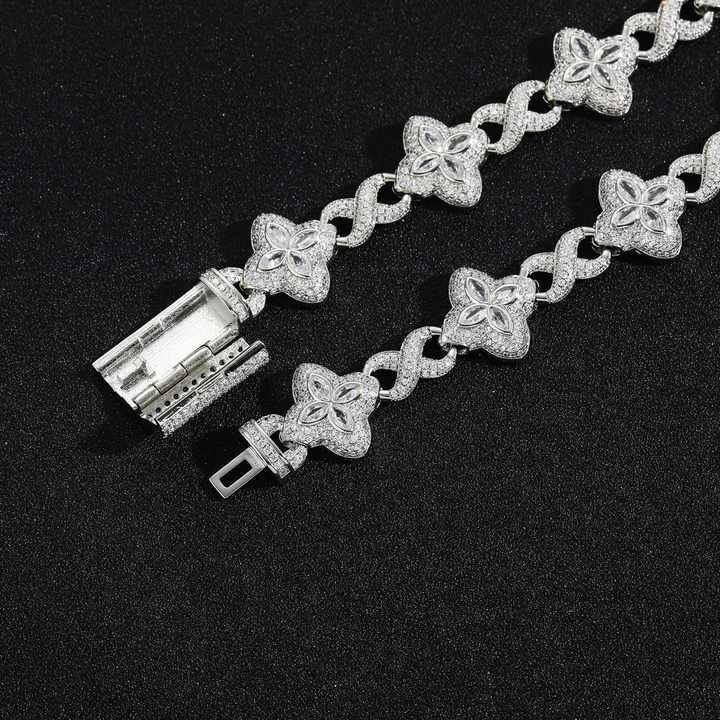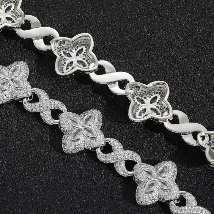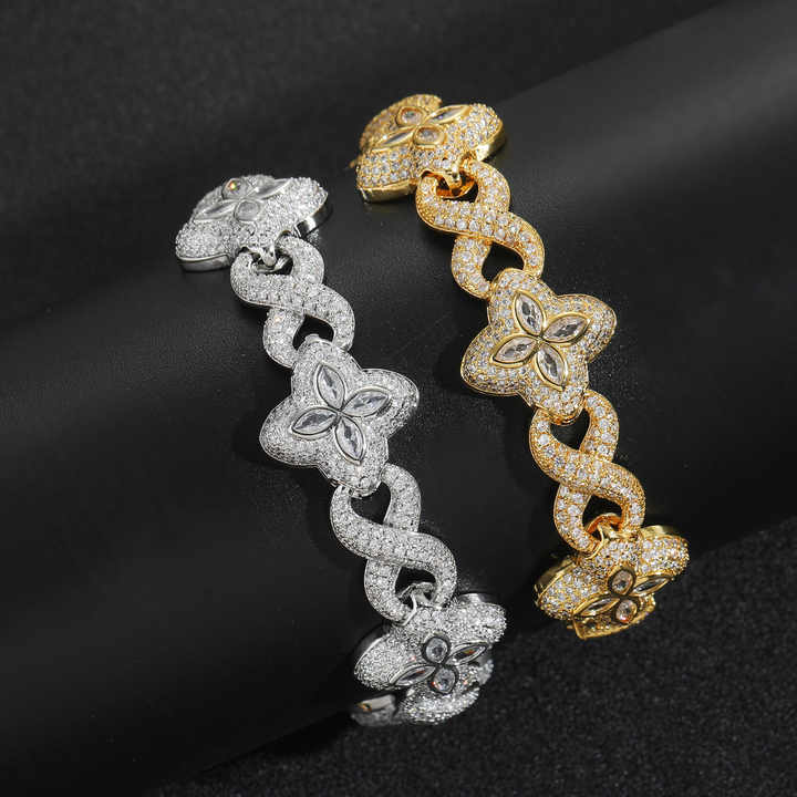 Crafted with precision, this dainty green clover bracelet features sparkling 5A cubic zircon stones set in a durable brass and copper base, plated with rhodium and 18K gold for lasting shine. The oval-cut zircons are micro-inserted into a sleek cubic chain design, blending hip hop edge with elegant charm. Perfect for anniversaries or adding a touch of bling to casual outfits, this bracelet offers a versatile accessory for women. The lightweight construction (0.070 kg) and compact size (10.0×9.0x1.7 cm) ensure comfort for daily wear. The rhodium and gold plating resist tarnishing, maintaining its lustrous finish. Each stone is securely set using micro-insert technology, ensuring the cubic zircon remains firmly in place. The adjustable chain links allow for a customizable fit, accommodating various wrist sizes. Designed for women who appreciate both boldness and delicacy, this piece transitions seamlessly from daytime casual to evening elegance. Care for your bracelet by avoiding harsh chemicals and storing it in a dry place to preserve its finish. Ideal as an anniversary gift, birthday present, or everyday accessory, this bracelet merges contemporary trends with timeless craftsmanship. Its cubic chain structure and green clover accents create a striking contrast, making it a standout piece in any jewelry collection. The single-item packaging ensures easy gifting, while the durable materials promise long-term wearability for hip hop enthusiasts and fashion-forward individuals alike.