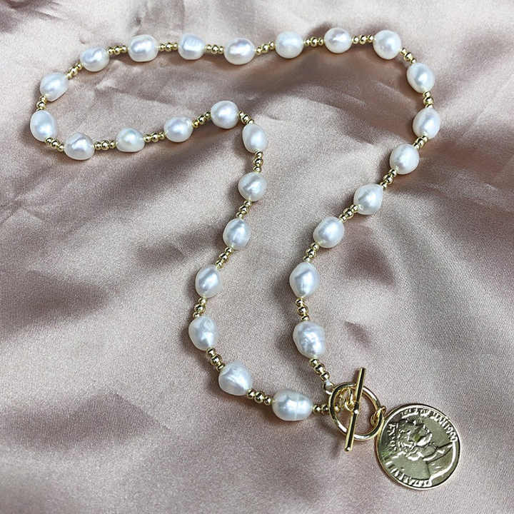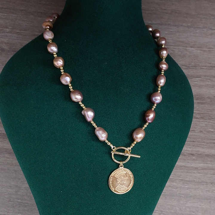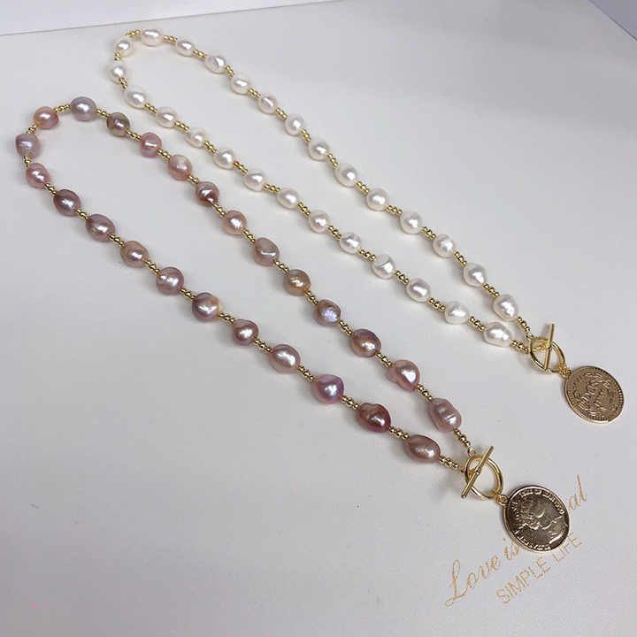 Crafted with lustrous 8-9mm natural freshwater pearls in a unique baroque shape, this trendy necklace combines elegance and modern style. Featuring a 14K gold-plated strand chain, the choker showcases alternating purple and white pearls for a striking contrast. The 3A high-luster pearls ensure exceptional shine, while the durable gold plating offers long-lasting wear. Measuring 13X8X9 cm and weighing just 0.032 kg, this lightweight sweater chain necklace sits comfortably as a choker or layered piece. Ideal for weddings, anniversaries, parties, or everyday wear, its unisex design complements both casual and formal outfits. Each necklace arrives securely packaged in an OPP bag and carton, ready for gifting or personal use. The baroque pearls’ organic shapes add artisanal charm, making it a versatile accessory for engagements, gifts, or special occasions.