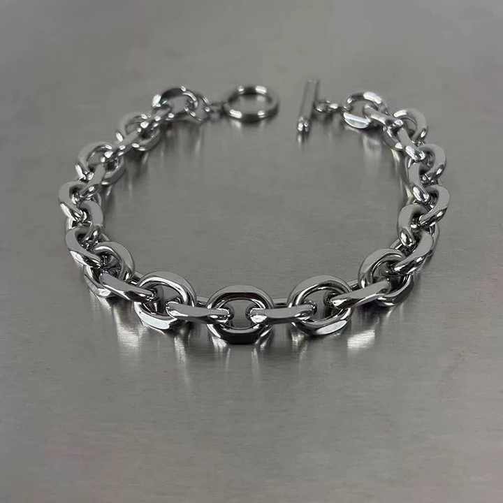 Crafted for contemporary style, this men’s stainless steel Cuban link chain bracelet combines durability with urban flair. Designed with a classic cuff silhouette, this hip hop-inspired accessory features a robust stainless steel construction, ensuring long-lasting wear resistant to tarnishing and corrosion. The high-quality hypoallergenic material suits sensitive skin, while polished finishes resist scratches. Choose from rhodium, gold, or black gun plating, or opt for custom colors to match brand aesthetics. Measuring 5x3x2 cm and weighing 0.030 kg, its lightweight Cuban link design delivers bold masculinity perfect for streetwear or casual outfits. Micro-insert technology ensures secure detailing, backed by third-party certification for quality assurance. Ideal for retailers, this wholesale-ready bracelet has a 2-piece MOQ and ships in protective OPP bags. OEM/ODM services enable custom logos and packaging, while the adjustable cuff fits most wrists comfortably. A versatile choice for music events, daily wear, or branded merchandise collections, this piece combines hip hop culture authenticity with rugged sophistication through its industrial-chic links and protective plating options.
