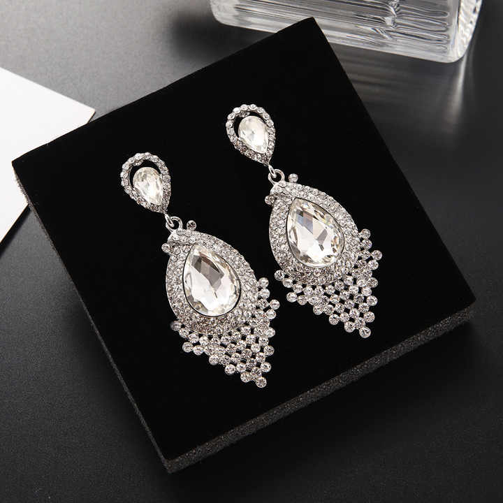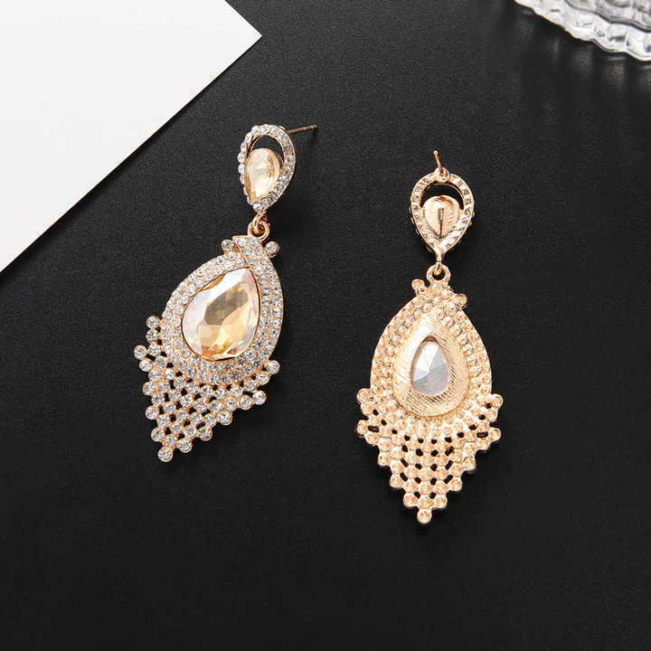 Crafted with a durable zinc alloy base and plated in 18K gold, silver, or gold finishes, these retro-inspired drop earrings combine timeless elegance with modern design. Featuring a water drop shape and intricate tassel detailing, each piece is adorned with sparkling zircon stones set using circling technology for lasting brilliance. Measuring 7x5x1 cm and weighing just 0.040 kg, these lightweight earrings are ideal for special occasions like weddings, anniversaries, parties, or as thoughtful gifts. The classic style transitions seamlessly from daytime events to evening glamour, enhanced by the crystal-and-zircon accents that catch the light with every movement. Packaged in protective OPP bags, these versatile earrings pair effortlessly with both casual and formal attire, making them a essential addition to any jewelry collection. Designed for comfort and durability, they maintain their luster through regular wear while offering a bold statement through their exaggerated drop silhouette.