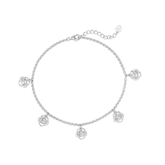 Trendy 925 Sterling Silver Zircon Anklet for Girls with Rhodium Plating and Micro Insert Design