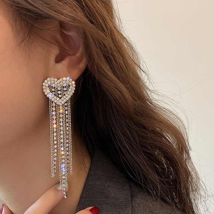 Trendy Alloy Tassel Drop Earrings for Women Heart Shape Silver Plated Engagement Daily Wear Elegant Jewelry