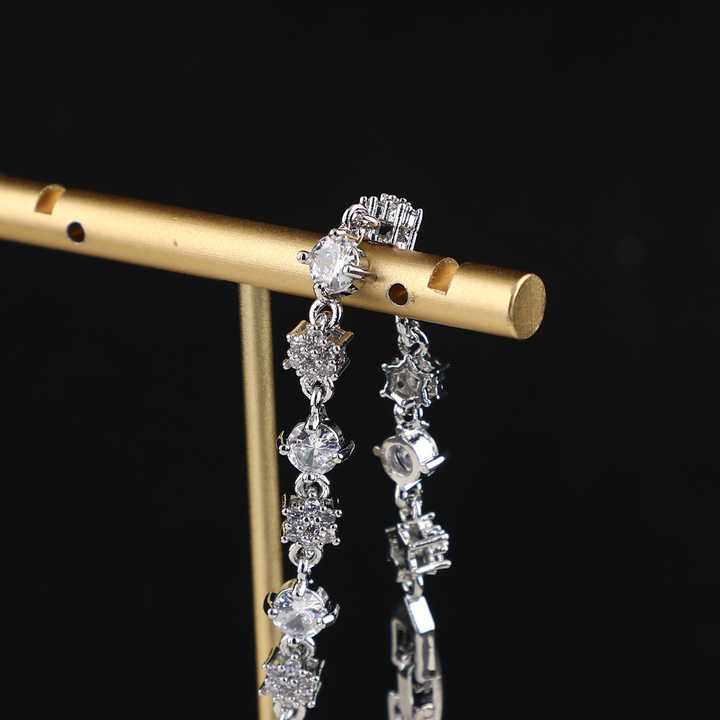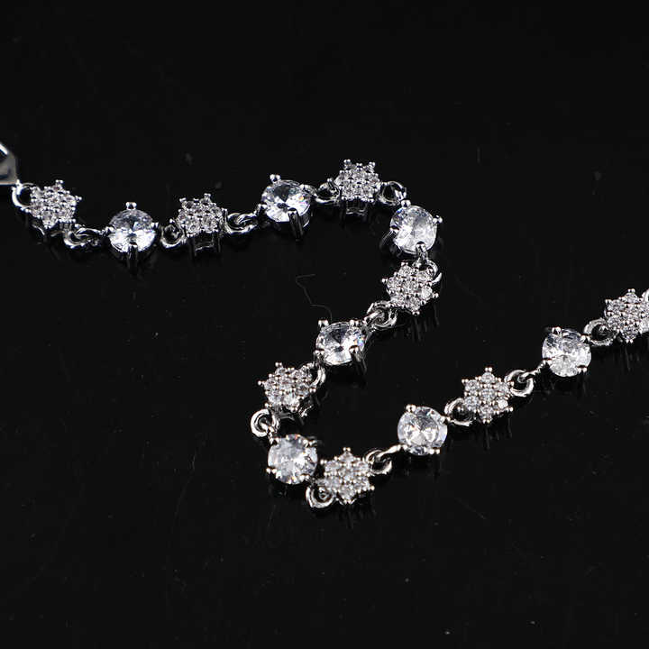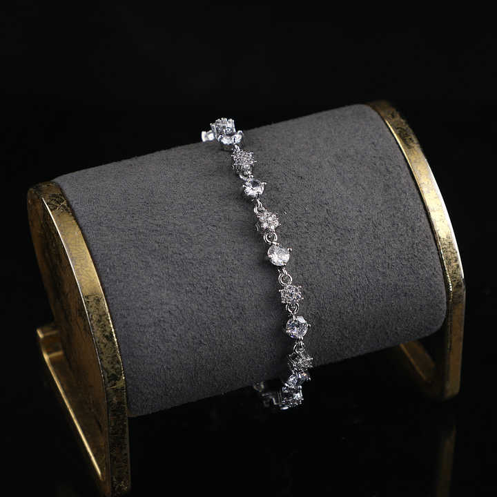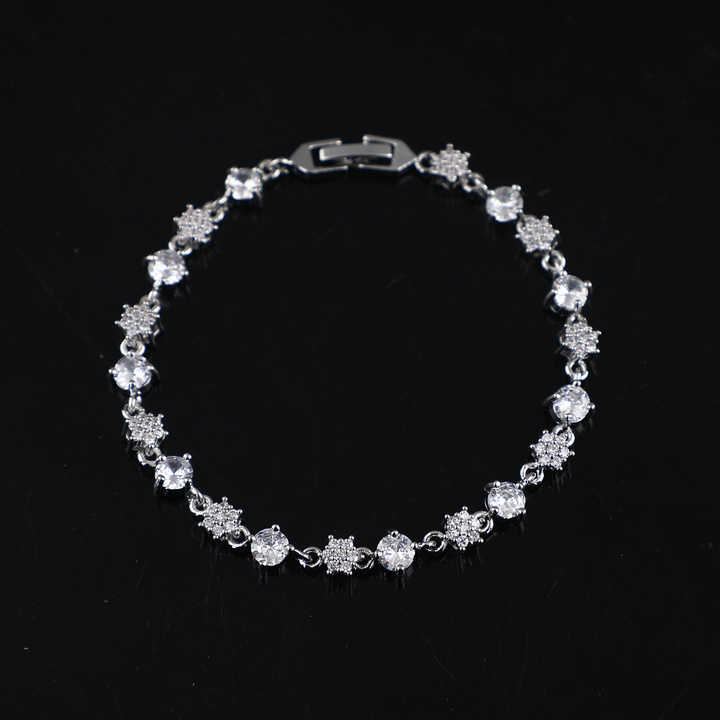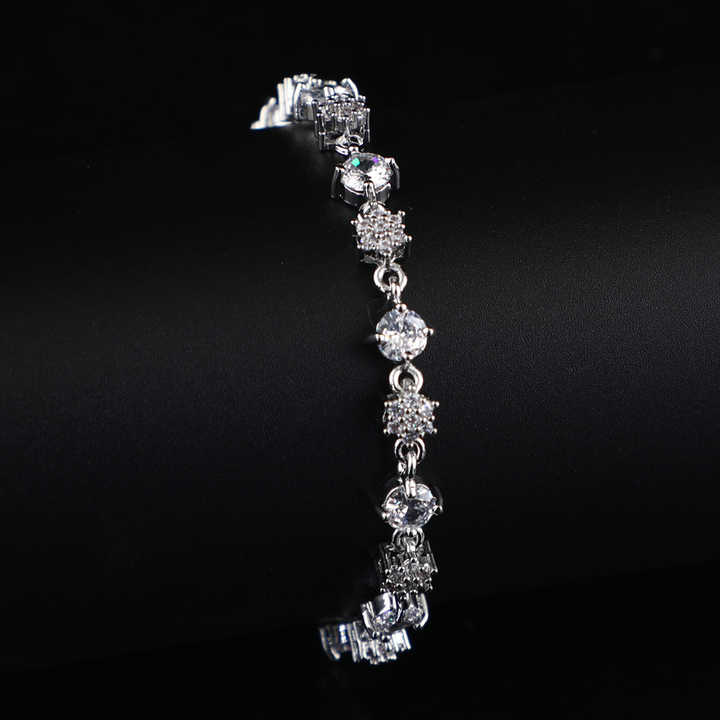 Trendy Platinum Plated Cubic Zirconia Tennis Bracelet for Women Sparkling Brass Jewelry