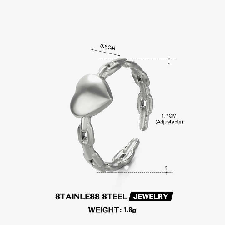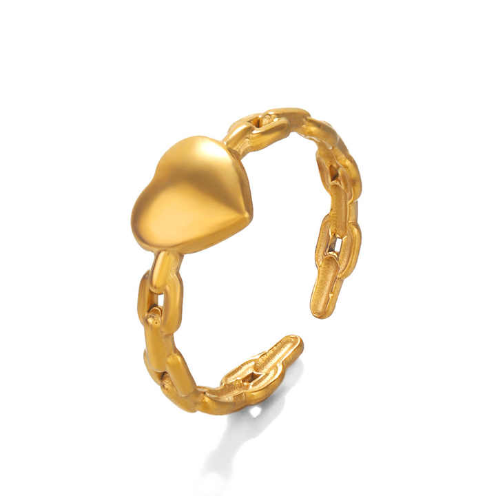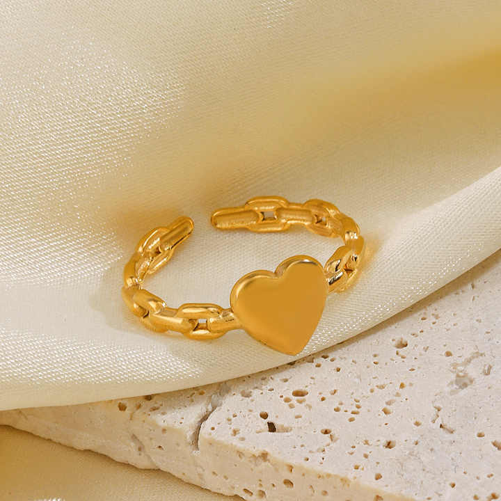 Crafted from durable stainless steel with a luxurious 18K gold plating, this trendy heart-shaped ring combines elegance and modern design. The geometric open-heart silhouette offers a fashionable statement, ideal for daily wear or special occasions. Measuring 5X5X2 cm and weighing 0.200 kg, its lightweight build ensures comfort without compromising style. Hypoallergenic and tarnish-resistant, it’s perfect for sensitive skin. Suitable for engagements, weddings, anniversaries, or parties, this versatile piece complements both casual and formal outfits. The minimalist yet eye-catching design aligns with contemporary trends, making it a thoughtful gift for women and girls. Care instructions: Avoid contact with chemicals or moisture to preserve the plating’s longevity. Packaged securely as a single item for easy gifting.
