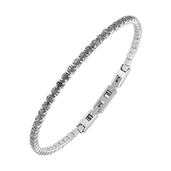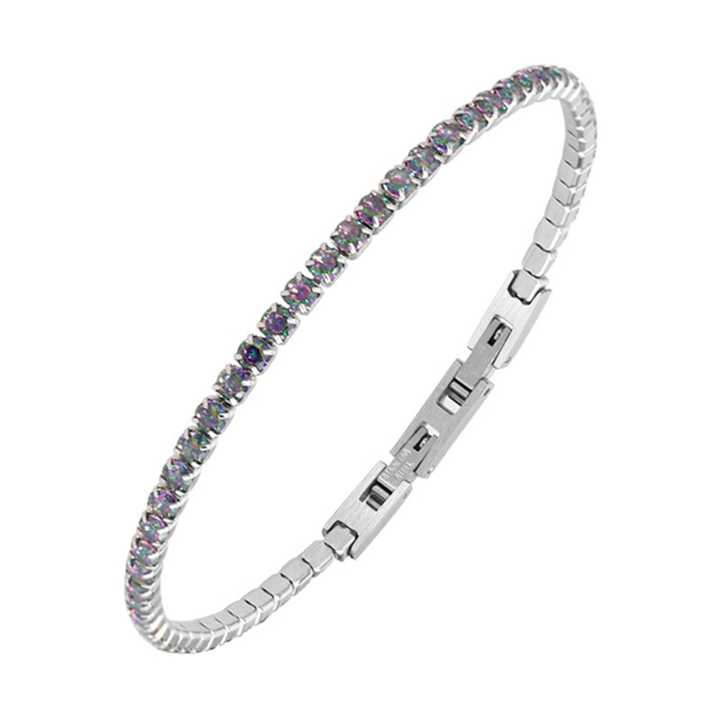 Crafted for modern elegance, this stainless steel tennis bracelet features dazzling zircon stones and crystal accents, offering timeless sophistication. Designed for women seeking trendy luxury, its hypoallergenic stainless steel construction ensures durability and tarnish resistance, ideal for daily wear or special occasions. The bracelet weighs 5g for lightweight comfort, with a secure clasp for a perfect fit. Measuring 7x5x1 cm in packaging, it suits wrists of most sizes. Perfect for anniversaries, parties, or as a thoughtful gift, its versatile design transitions seamlessly from daytime chic to evening glamour. Each piece arrives in protective packaging: individually wrapped in a plastic bag, cushioned with bubble wrap, and secured in a sturdy carton. The minimalist yet striking design emphasizes clean lines and sparkling stone arrangements, making it a standout accessory for fashion-forward individuals. Stainless steel’s resilience ensures long-lasting shine, while zircon’s brilliance mimics diamond fire at an accessible price point. Celebrate life’s moments with this blend of contemporary style and enduring quality.