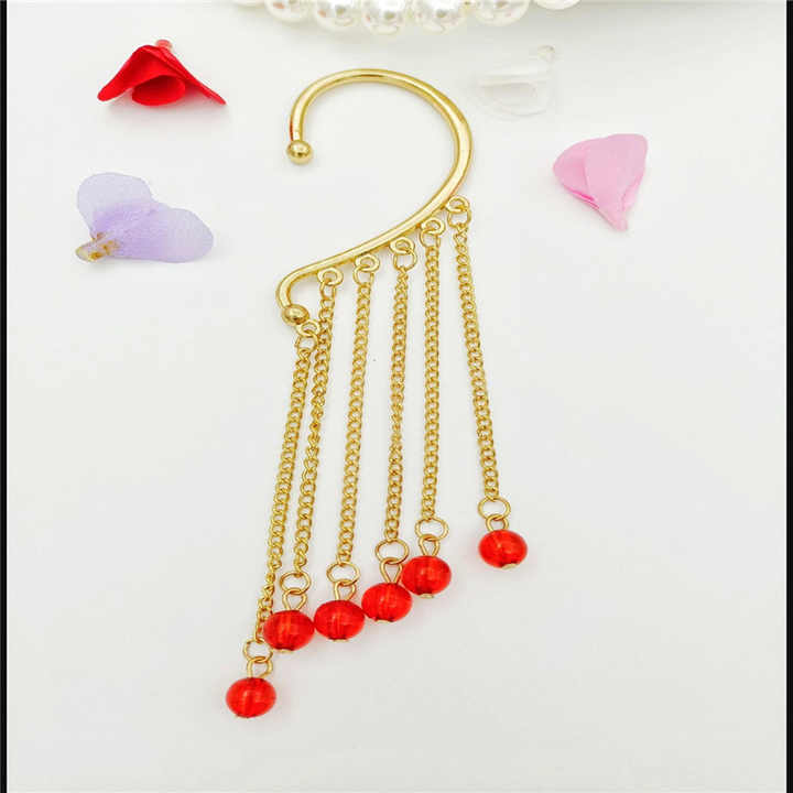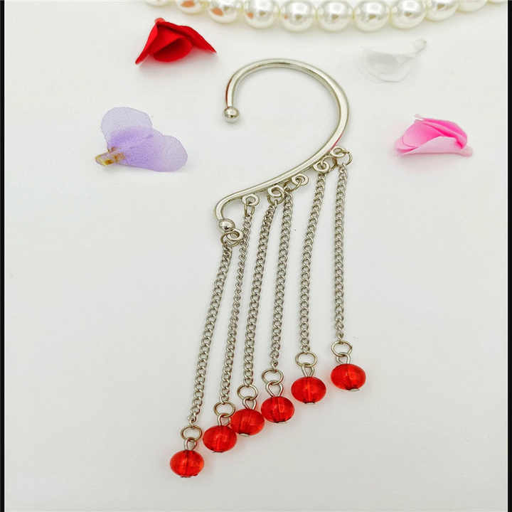 Vintage Pearl Tassel Ear Cuffs with Chains – No Piercing Alloy Earrings for Women, Anniversary Gift