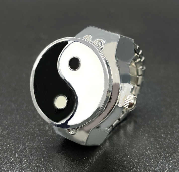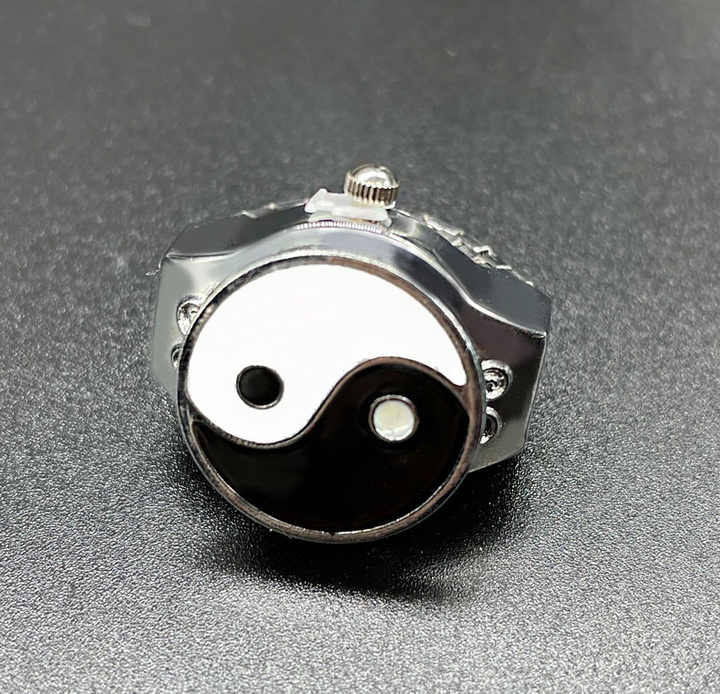 This Vintage Yin-Yang Digital Ring Watch combines innovative timekeeping with elegant jewelry design. Crafted from durable alloy and stainless steel, this minimalist finger ring features a symbolic Yin-Yang pattern, symbolizing balance and harmony. The silver or gold-plated finish offers versatility, while the 15-20 gram lightweight construction ensures comfort for daily wear. Measuring 2x2x2 cm, its compact size fits discreetly on any finger, suitable for unisex, men’s, women’s, and children’s use. Adorned with crystal and rhinestone accents in a prong setting, this piece excels as a functional accessory for weddings, engagements, anniversaries, or parties. The digital display ensures accurate timekeeping without compromising style. Hypoallergenic materials cater to sensitive skin, and the customizable logo option (300pcs minimum order) adds a personalized touch for gifts or events. Its durable build resists tarnishing, making it ideal for both casual and formal occasions. Practical yet stylish, this dual-purpose ring watch seamlessly blends modern technology with vintage aesthetics, perfect for those seeking unique, conversation-starting jewelry.